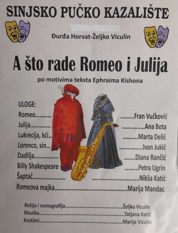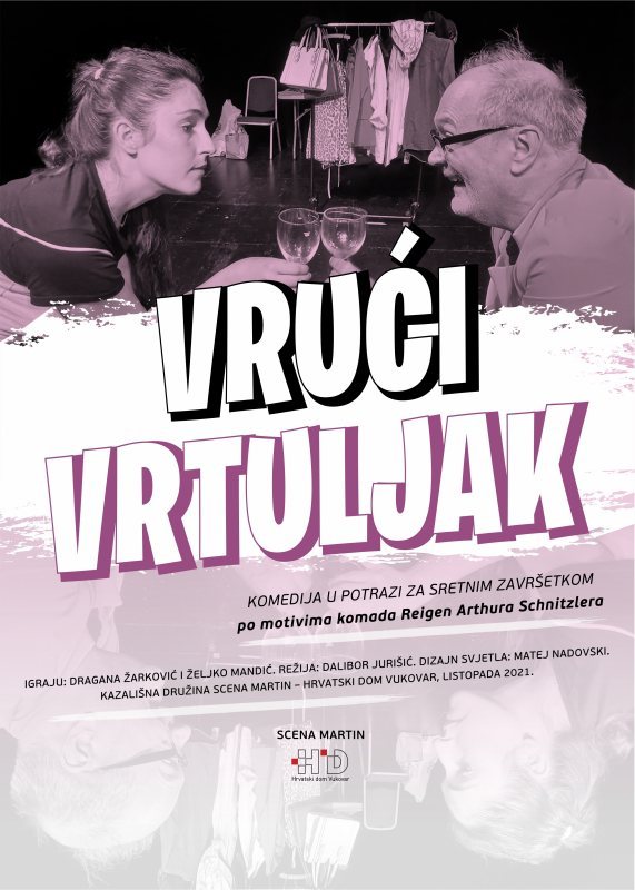 Hrvatski dom Vukovar svoju kazališnu jesen počinje programom VEČER KOMEDIJE. Za petak, 8. listopada najavljujemo premijeru predstave VRUĆI VRTULJAK vukovarske Scene Martin. Osim domaće, publika će pogledati i jednu gostujuću komediju: A ŠTO RADE ROMEO I JULIJA Sinjskog pučkog kazališta. Večer komedije počinje u 19 sati i traje oko dva sata.https://arhiva.vukovar.hr/194-najave/15752-vecer-komedije#sigProId70f5ccf4dc